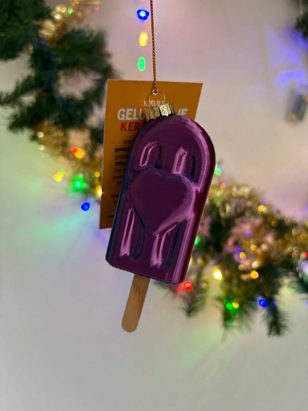 Deze speciale kersteditie van Kjeld’s Geluksijsje is niet zomaar een kersthanger — het is een symbool van warmte, hoop en geluk.